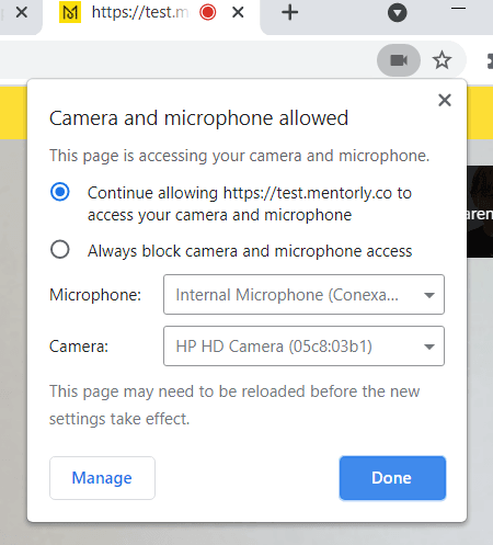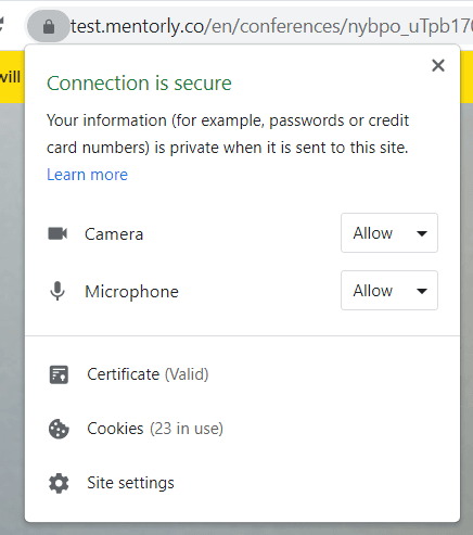 • Be sure to allow access to your microphone/camera by accessing your permission settings of your browser.