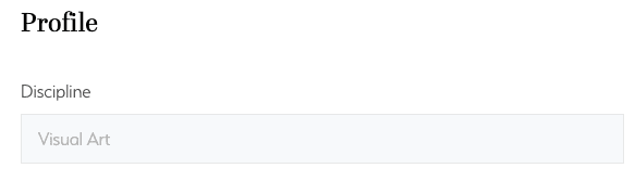 Currently we only allow your profile to be under one discipline (not multiple) which was set up upon creating your account and you can no longer change it yourself. i.e. Visual Art