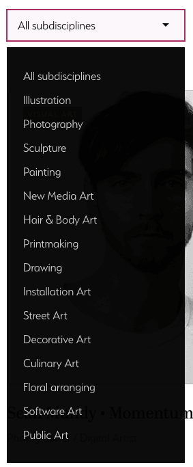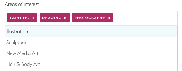 Here are all the sub-disciplines (areas of interest), in this case, for Visual Art: