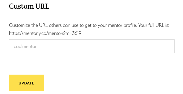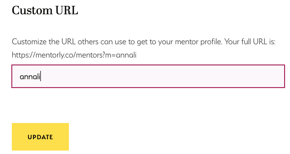 Lastly, if you want, you can create a custom URL for your Mentorly profile: